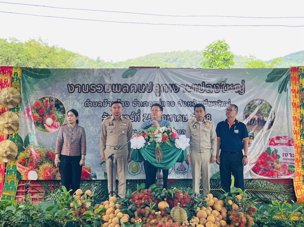 On August 25, 2025, Ms. Sucharee Picha, Director of the Office of Agricultural Economics Region 1, assigned Ms. Natthinan Chantake, Operational-Level Agricultural Economist, together with officials from the Research and Evaluation Division, to attend the “Rambutan Cluster Farmers Gathering” held at the Multi-purpose Pavilion, Village No. 2, Ban Kao Maka, Ban Chang Subdistrict, Mae Taeng District, Chiang Mai Province.