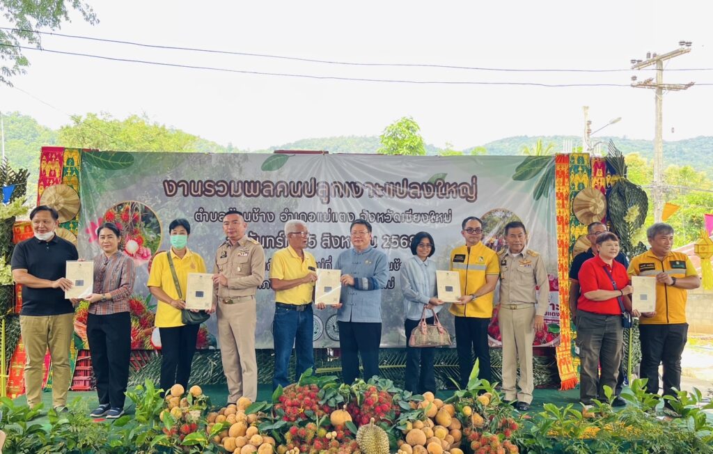The event featured the presentation of agricultural land title deeds, tree title deeds, and rubber tree deeds to local farmers as part of efforts to support and promote the activities of the Ban Chang Rambutan Cluster Group. In addition, educational exhibitions were organized to provide information on agricultural land title deeds and tree title deeds, alongside showcases of community enterprise initiatives related to rambutan cluster development in Ban Chang Subdistrict.