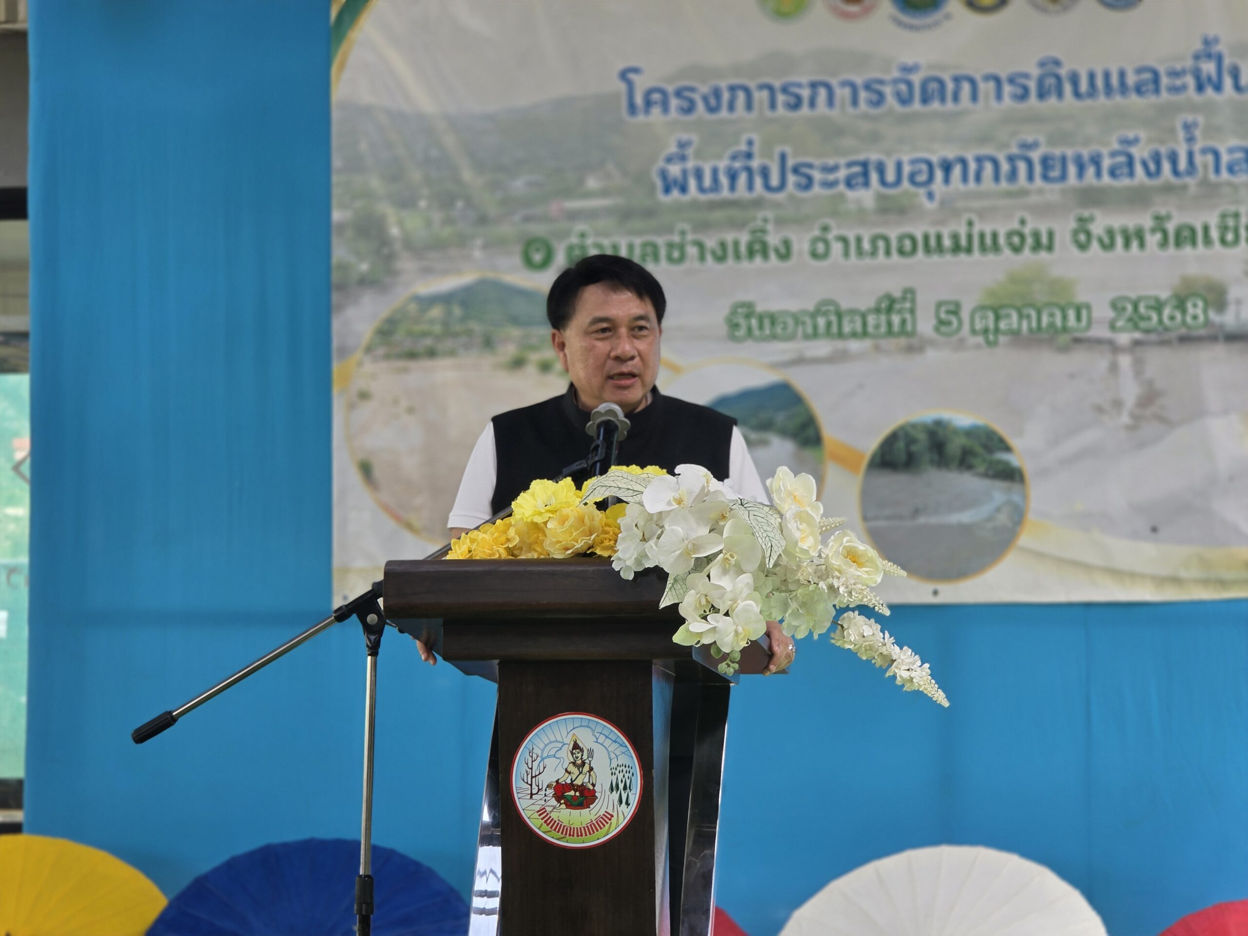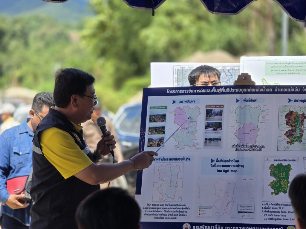 Afterward, the delegation followed up on a soil management and post-flood rehabilitation project, which includes land leveling, and the repair of the Mae Chaem River embankment in Ban San Nong, Chang Khoeng Subdistrict, Mae Chaem District, Chiang Mai, to ensure future stability and sustainability in local water management.