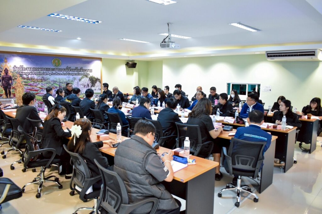 On 25 November 2025 at 9:30 a.m., Ms. Sucharee Picha, Director of the Office of Agricultural Economics Region 1, assigned officers from the Agricultural Economic Zone Development Planning Section to attend the 2/2025 Meeting of the Provincial Subcommittee on Agricultural and Cooperative Development at the meeting room of the Chiang Rai Provincial Office of Agriculture and Cooperatives.
